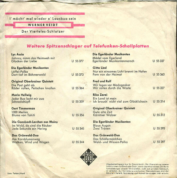 Vinyl / Werner Veidt - I' Möcht' Mal Wieder E' Lausbua Sein