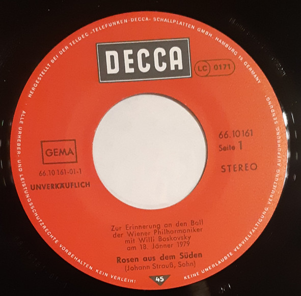 Vinyl / Wiener Philharmoniker - Rosen Aus Dem Süden / Im Krapfenwald'l / Tritsch-Tratsch-Polka