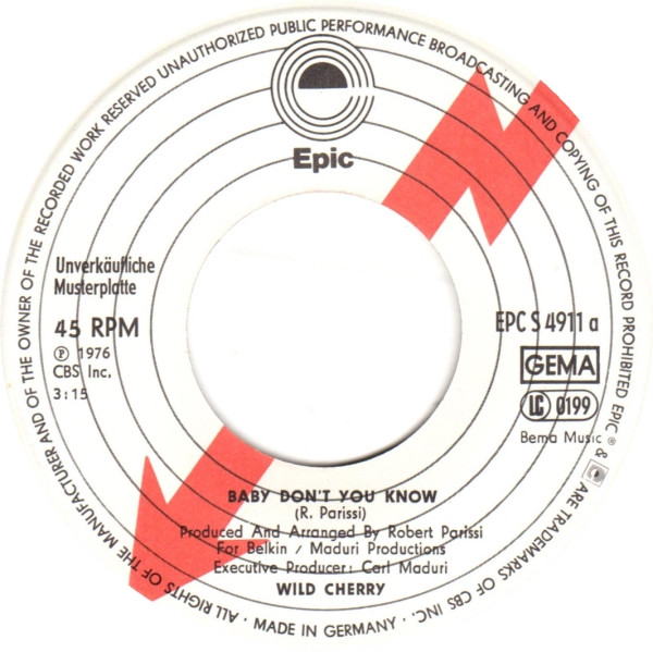 Vinyl / Wild Cherry - Baby Don't You Know