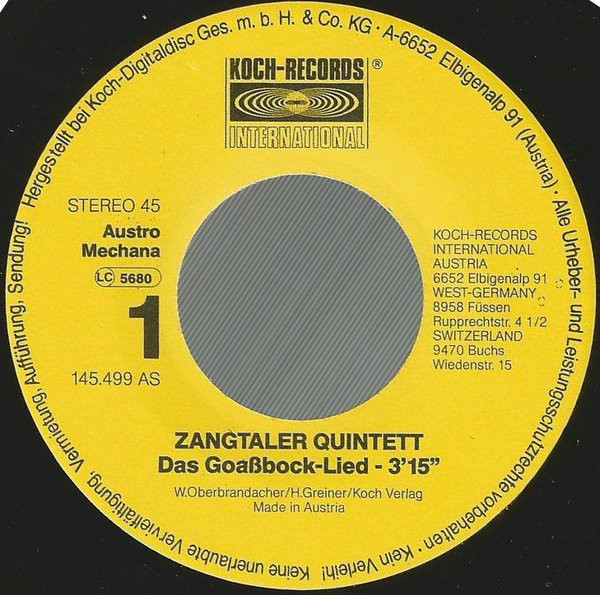 Vinyl / Zangtaler Quintett - Das Goassbock-Lied