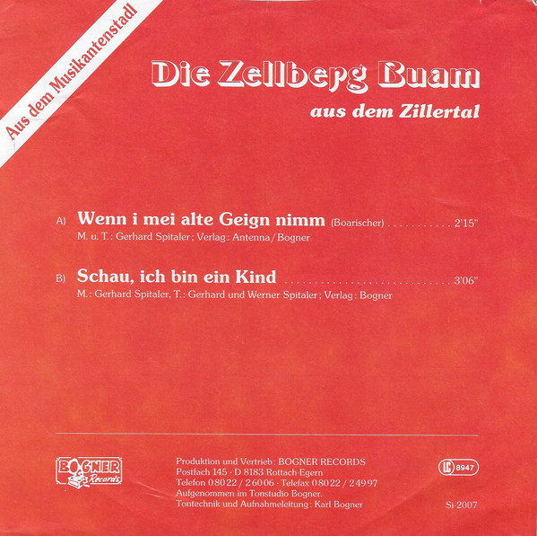Vinyl / Zellberg Buam - Wenn I Mei Alte Geign Nimm
